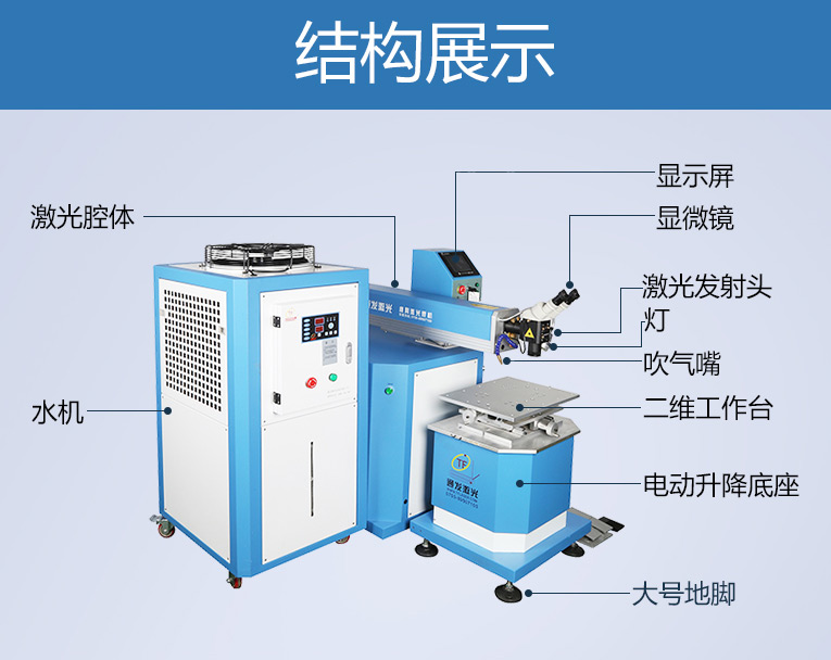通發激光TFL-300Ⅲ大功率模具激光焊機,比普通激光焊機修復模具效率快1.5-2倍,適合0.3-0.6激光焊絲,大功率更適合修復鈹銅模具、鋁模等較難修復的模具。