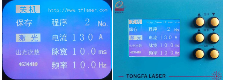 2、本首飾激光點焊機軟件可選擇中文或者英文界面,對不同加工位置選擇相應的激光焊接加工參數。由選擇按鈕移動光標到相應的參數位置,由調節按鈕調節參數的大??;