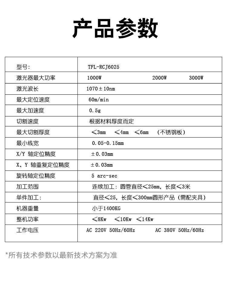 連續加工:圓管直徑≤25mm,長度≤3米 單件加工:直徑≤25,長度≤300mm圓形產品(需配夾具) |